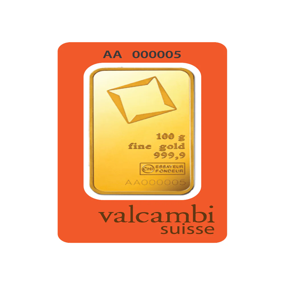 Unmatched Purity: Revel in the brilliance of 99.99% pure gold, a testament to Valcambi Suisse's commitment to excellence in refining. This gold bar exudes prestige and holds its value steadfastly, ensuring your investment remains a beacon of stability in uncertain times.